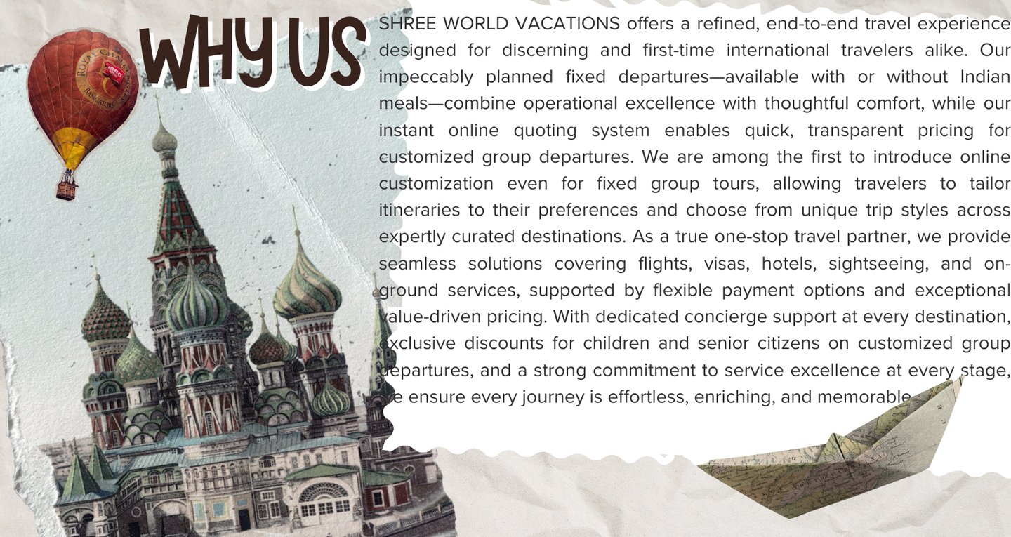 Call Us today to experience your memorable vacation with Shree World Vacations - Your Gateway to Global Vacations!.