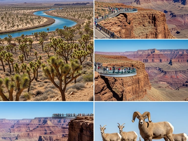Stop at Arizona’s Joshua Tree Forest on the way to the Grand Canyon West. Approximately two and a half hours later, you will arrive at Grand Canyon West, located within the Hualapai Reservation. Experience the various areas of Grand Canyon West for approximately four hours. Enjoy views of Eagle Point, with the eagle's shape along the spine of the canyon ridge. Walk on the thrilling Skywalk, a glass bridge that arches out over the canyon wall. Explore the area around Guano Point, a breathtaking pinnacle offering views in all directions. Visit the displays of Native American dwellings and cultural exhibits. Depart the Grand Canyon, stopping on the return trip at the Mike O'Callaghan--Pat Tillman Memorial Bridge, and walk up the pedestrian walkway overlooking the Hoover Dam and the Colorado River. Visit Boulder City’s Hemenway Park to see the famous bighorn sheep. Continue for your return to Las Vegas.